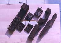 木頭:原則上,可以選用來做萬力的木頭只有一字絕「硬」,就是要夠硬,很硬,非常硬!因為萬力畢竟是要予以施力的緊固器具,不夠硬的木質,在加工過程或是完工後的使用上都會因為施力而裂開或折斷,或者是在將來的使用上刮傷或受損。一般可以使用的木頭如黑檀、紫檀、花梨、雞翅等紅木,再次一等的櫸木、肖楠等,甚至巴樂樹頭、七里香樹頭等等,都是可以選用來製作萬力的木材。一塊一吋厚,長寬30cmX15cm的板材就足夠做一棵萬力了,選用這樣的板材在製作上會比較單純容易,如果是原型的棒狀木頭就得另外裁切或甚至依據木頭原型來順勢製作,這難度就比較高了!這些紅木要去那裡買呢?其實我也還在摸索,到處找朋友詢問,或四處逛逛甚至跑到三義木雕街去探訪,不過,實際上木雕使用的木頭並不常用太硬的材料,因為雕刻刀會刻不下去不好施工,也許您可以到紅木傢俱或是製作神桌的工廠去找找,大溪有一家有德製料,可以很方便的買到花梨木,如果您需要知道連絡方式,再私下寫Mail問我好了。
